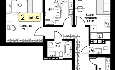 2-комн. Квартира, 66 м2