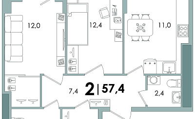 | Площадь: | 57.4 кв. м |