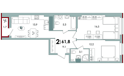 | Площадь: | 61.8 кв. м |