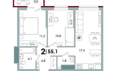 | Площадь: | 55.1 кв. м |