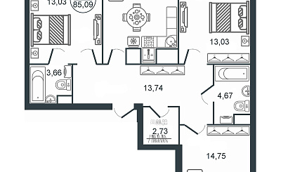 | Площадь: | 85.09 кв. м |